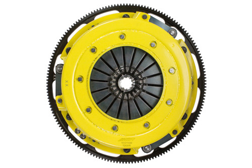 T3S-F01 street, twin disc kit offers twice the number of disc surfaces for better wear, heat capacity and long life compared to single disc kits. These kits use a proprietary Positive Lift Floater System design, which results in quiet operation with no floater rattle and no posts to wear. ACT twin disc kits endure an exclusive four-stage, heat-treating process on all diaphragms. The ACT twin disc features the ability to adjust for disc wear and provides equal disengagement for discs. The ACT Performance street rigid-hub discs feature premium organic materials with high copper content for better heat transfer and steel-backed lining for greater burst strength and durability. The chrome-moly hub is heat-treated for strength and durability. Rivet design and materials are carefully selected for maximum strength. All ACT twin disc kits include a CNC-machined and dynamically balanced flywheel to ensure trouble-free installation and operation. ACT twin disc kits include a pressure plate, two discs, a floater, flywheel and alignment tool. Some kits may included a pilot bearing and release bearing.
