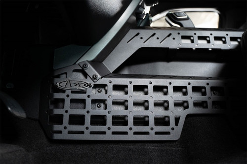 Our Center Console Molle Panels & Digital Device Mount were designed to bring utility to the cab while complementing the OEM interior styling. The kit includes driver & passenger side molle panels, perfect for stowing everyday carry items like a holster, multi-tool, radio mic, & other gear. The molle is compatible with various attachment systems such as molle mounts, straps, ¼-inch bolts, or other tactical solutions. The top edges of the panels and the adjoining bridge plates feature PEM nut accessory points compatible with Ram Mounts device holders. Here, you can arrange your digital devices in a convenient location while on the move. Great for your smartphone, GPS, tablet, or other gear. All of the panels are finished in a dual-stage hammer black powder coat. As always, these are Made in America. 3 Possible Configurations: Side Panels Only - The Side Molle Panels can be installed on their own, without the bridge. This offers you molle mounting options, as well as the upper side rails which are compatible with Ram Mounts device holders. Side Panels & Bridge - This configuration provides you with the maximum utility, offering plentiful molle mounting options, and versatile device holder mounting locations at both the sides and the center of the console. Bridge Only - Although the Device Bridge can be installed on its own, we strongly encourage you to install the side panels along with the bridge for the cleanest aesthetic.