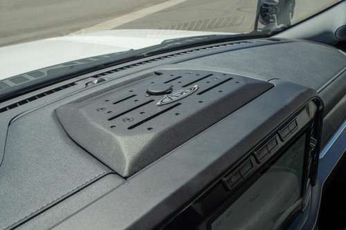 Our Digital Device Dash Mount is a convenient solution for holding your handheld devices in your truck's cab. It's compatible with Ram Mounts and similar holders, allowing easy access to your smartphone, action cameras, GPS, radio mic, and tablet. Plus, it includes dual 12V USB charging ports to power your devices without interfering with the factory in-dash speaker. Made from sturdy 1/8-inch American steel and finished in black powder coat, this mount is proudly Made in the USA. Please Note: Drilling and wiring is required for installation.