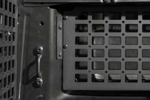 Our Ranger Raptor Bed Side Molle Panels are designed to securely store your daily and off-road gear on the sides of your truck bed, leaving it free for transporting larger equipment. The molle pattern is perfect for mounting axes, shovels, fire extinguishers, tool kits, jacks, hoses, and other important supplies. You can utilize straps, bolts, Quick Fists, and other molle compatible attachment systems for securing your gear to the panels. The molle panels are available for the driver and passenger side, allowing you to outfit your truck bed with one or both sets, depending on your storage needs.The Ranger Raptor Molle Panels closely follow the OEM lines of your truck bed for a seamless fitment. The install process is straightforward, and the panels mount to multiple install points for a rigid figment that won’t rattle, even when on rough terrain. The driver side set features a removable molle panel for accessing the truck’s accessory power ports when needed. The panels are made from heavy-duty American steel for withstanding the added weight from your tools and equipment. They are finished in a resilient dual-stage hammer black powder coat that complements your truck’s sleek exterior styling. The panels retain your truck’s OEM tie down points while providing additional tie down capabilities. As always, our molle panels are proudly made in the USA.