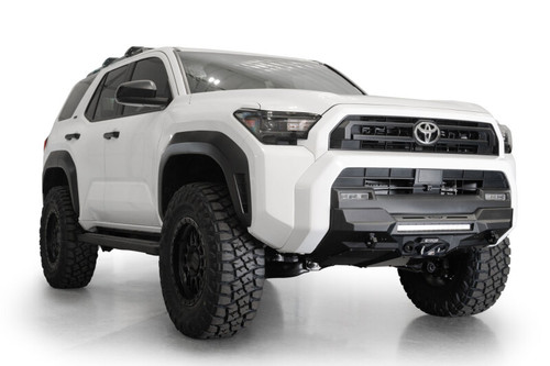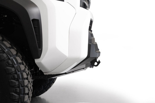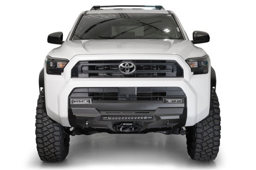 The Stealth Center Mount Front Bumper for the 2025 Toyota 4Runner offers a low-profile OEM-style design with an integrated 20" single-row LED light bar mount and a concealed heavy-duty winch mount. It retains TSS, OEM parking sensors, and all driver-assist features. Includes two integrated 1" thick CNC-machined D-ring clevis mounts for ¾" D-rings. Optional 3/16" aluminum skid plate (AC7105603NA) available. Finished in a two-stage hammer black powder coat and installs with supplied hardware. Proudly made in the USA.
