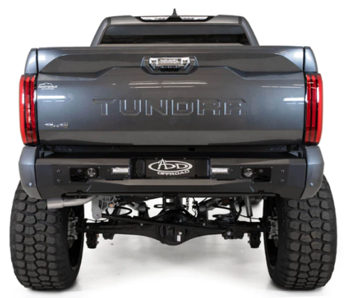 Sleek, tough, and ready to take on anything, the 3rd Gen Tundra Stealth Fighter Rear Bumper is perfect for anyone who wants to add a little extra edge to their truck. With its mid-width design and integrated light pod mounts, this bumper is sure to turn heads no matter where you go. It's finished in a hammered black powder coat with satin black aluminum accent panels for a touch of rugged sophistication. We've integrated the factory reverse and license plate lights seamlessly into its design. The bumper retains Factory Blind Spot Detection and OEM Backup Sensor Functionality, so you can drive with confidence knowing that your safety is always our top priority. No cutting of the body panels is required for installation. The factory hitch & receiver fit perfectly with the bumper and function as intended. As always, this is fully bolt-on and Made in the USA.