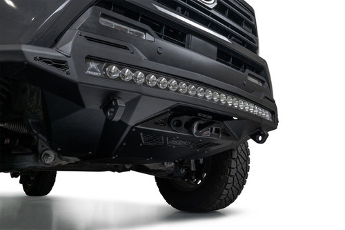 The Stealth Fighter 4th Gen Tacoma Front Bumper is a low-profile, aggressive steel bumper with a hidden winch mount, 1-inch D-ring recovery points, and an integrated skid plate for undercarriage protection. It supports a 40-inch curved LED light bar or nine cube lights, retains factory sensors and Toyota Safety Sense, and features a durable dual-stage hammer black powder coat. Made in the USA, it delivers style, protection, and full off-road functionality.