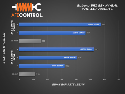 Take your GR86/BRZ to the next level with aFe CONTROL’s sway bars. With our fully adjustable sway bars, you can easily dial in the handling balance and eliminate understeer. Body roll will be reduced, maximizing tire contact with the road. Shortened transition response will improve initial turn-in making the car more agile and feel lighter. Whether its stability on the track, more rotation on the autocross, or just adding confidence in the canyon, aFe CONTROL sway bars will deliver. Every aFe CONTROL sway bar is CAD designed and CNC bent to strict tolerances. This insures precise fit and perfect operation. Our front sway bar is 2-way adjustable. This allows the driver to dial in the front roll resistance to achieve the desired handling bias. Front sway bars utilize laser cut end plates. These are welded to the bar in a dedicated fixture to insure accurate hole positioning and consistent manufacturing. aFe CONTROL includes low-deflection polyurethane bushings.