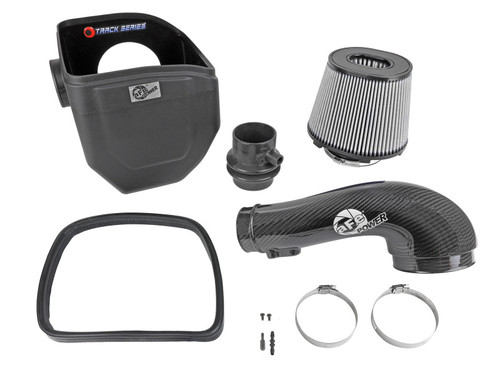 This 7” tall 360-degree radial flow air filter features a 5" flange and our oil-free Pro DRY S media with three layers of synthetic media for maximum convenience. Its progressive layering provides great filtration efficiency and dust holding capacity, while not requiring the use of oils. Its inverted top makes for more filter surface area, resulting in longer service intervals. This media is best suited for street use. This kit includes a Magnum SHIELD Pre-Filter to protect your performance air filter from large debris and water splash. The included massive air filter is surrounded by an open-element XLPE (cross-linked polyethylene) polymer housing that minimizes warm engine air for maximum performance. Its open design allows for easy viewing of the air filter and delivers an aggressive Air Intake sound. It connects to the vehicle’s factory air inlet with no additional hardware. The lightweight tube is computer-designed to achieve maximum power gains while maintaining a perfect fit. Manufactured from 100% twill weave carbon fiber, it features zero fiberglass and is clear-coated for the highest quality construction. This kit has a 53% weight reduction compared to the OEM intake. Stainless-steel clamps are included for strength, and premium silicone couplings allow for ample flexibility. Track Series intakes are designed with fewer parts for a fast and easy installation.
