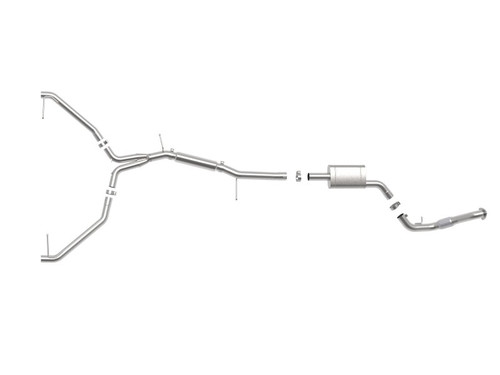 This MACH Force-Xp axle-back exhaust system is constructed of 3 IN - 2-1/2 IN mandrel-bent 304 stainless steel tubing for maximum strength and durability. Featuring a high-flow stainless steel muffler that produces a mild yet deepened tone, this system is guaranteed to gain attention. Due to the state-of-the-art computer-aided technology utilized to design this system the fitment is precise and requires no modifications.