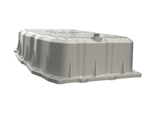 This transmission pan has an increased fluid capacity of approximately 4 quarts over stock for better performance over a longer duration. Built-in internal and external fins transfer heat from the fluid to the outside air for maximum cooling. Transmission pan is compatible with factory equipment and comes with necessary hardware for installation. This pan incorporates a magnetic drain plug to capture loose particles for maximum protection