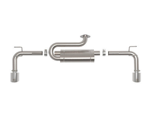 This axle-back exhaust system is constructed of 2-1/2 IN mandrel-bent 304 stainless steel tubing for maximum strength and durability. This system features a high-flow 304 stainless steel muffler, producing a mild sound. Finishing off this exhaust system are dual 4-1/2 IN diameter polished 304 stainless steel clamp-on exhaust tips. The tips features a laser etched Takeda logo for a unique style. This system produces a mild sound unleashing all available horsepower and torque. Utilizing a factory style flange and hangers this system is a direct bolt-on system, which requires no cutting or modifications for a hassle-free installation. State-of-the-art computer-aided design technology is utilized for precise vehicle fitment. 100% MIG-Welded for race-proven strength and durability.
