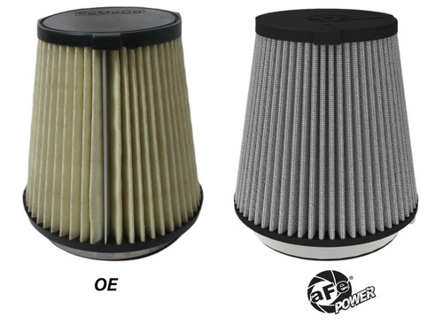 This filter features three layers of oil-free synthetic media and requires no oil during maintenance to provide maximum convenience. Its progressive layering provides great filtration efficiency and dust holding capacity, while its inverted top makes for more filter surface area, resulting in longer service intervals. This media is best suited for street and light off-road use. Pro DRY S filters are easily recharged with aFe's POWER CLEANER. aFe POWER performance air filters use a rounded, evenly spaced pleat design which allows for more usable filter surface area, providing increased flow and greater dust holding capacity. This aFe POWER performance air filter is constructed with a polyurethane base and top. Unlike other materials that degrade after repeated heat cycles in an engine bay, polyurethane maintains its original molded shape.