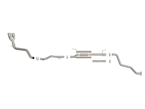 This cat-back exhaust system is constructed of 2-1/2 IN - 3 IN mandrel-bent 304 stainless steel tubing for maximum strength and durability. This system features a high-flow 304 stainless steel muffler and acoustically tuned expansion chamber for a deep exhaust tone. Rear side-exit exhaust with dual 4" polished 304 stainless steel exhaust tip for an aggressive, custom look. This system produces an aggressive sound unleashing all available horsepower and torque. Utilizing a factory style flange and hangers this system is a direct bolt-on system, which requires no cutting or modifications for a hassle-free installation. State-of-the-art computer-aided design technology is utilized for precise vehicle fitment. 100% MIG-Welded for race-proven strength and durability.