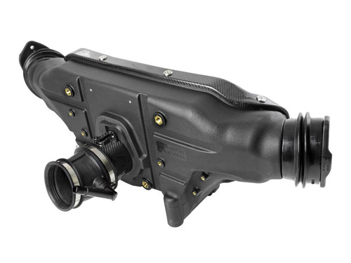 Dual 4” Flange 360-degree radial flow air filters feature our pre-oiled Pro 5R media with five layers of progressively finer cotton gauze media for maximum performance. They provide your engine with the largest amount of high-flowing air, and in most cases deliver the highest power gains of our filter media options. This media is perfect for street and/or track use. Their inverted tops make for more filter surface area, resulting in longer service intervals. Lightweight twill weave carbon fiber tube directs the filtered air from the dual air filters to the engine. It is computer designed and dyno tested to increase air flow while reducing weight and enhancing the visual appearance of the engine bay. The tube is manufactured out of 100% carbon fiber material (No fiberglass). The dual air filters are surrounded by an open-element XLPE (cross-linked polyethylene) polymer housing that minimizes warm engine air for maximum performance. It is precisely designed and manufactured to fit perfectly into the factory mounting location. The housing connects to the factory air inlets on each side of the vehicle to capture the coolest air available. Silicone bellow couplings are used for engine movement and easy installation. This unique carbon fiber cover is also lightweight high gloss clear-coated twill weave carbon fiber and closes off the housing from unwanted hot engine air. It features a Black Series emblem for authenticity and is secured to the housing using aFe POWER laser etched washers and bolts. This cover will greatly enhance your engine bay appearance. Premium stainless steel clamps and flexible silicone couplings are used for strength and durability while also providing the most secure installation available.