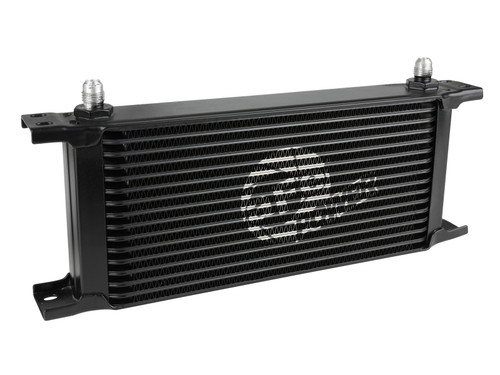 This BladeRunner Oil Cooler uses a durable brazed all-aluminum stacked-plate construction that allows for greater efficiency and lower pressure drop than a standard tube-fin design. The included hoses are heavy-duty, high-temperature, and high-pressure rated. This kit is suitable for use with engine oil, transmission oil, power steering fluid, and more. This BladeRunner Oil Cooler makes installation simple with aluminum universal mounting brackets, stainless steel hardware, and leak-proof AN connections. BladeRunner Oil Coolers feature a durable black powder coated finish with a laser-etched aFe POWER logo on the front and include black-anodized billet aluminum AN fittings for a sleek appearance.
