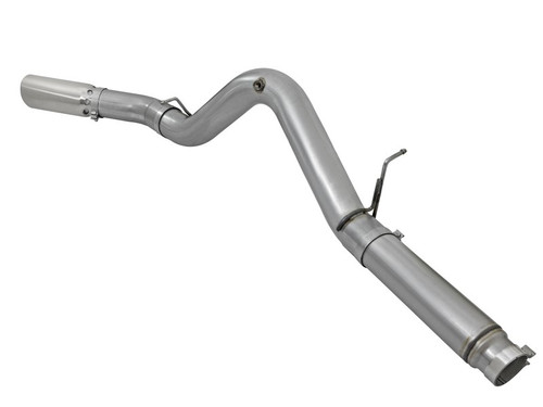 Interested in a new exhaust system for your LML Duramax? Check out the Large Bore-HD DPF-Back exhaust system by aFe. This system is constructed from 5" mandrel-bent 409 stainless steel tubing and uses high quality band clamps and OE-style bayonet hangers. This unit uses all factory mounting locations to provide a quick, hassle-free installation. Also included in this exhaust system is a massive 6" wrinkle-black powder-coated 304 stainless steel tip with a laser-cut stainless steel aFe power badge. Large Bore-HD exhaust systems are the perfect combination of performance, fit and value. Simple Installation: All systems use factory mounting locations providing stability and hassle-free installation. Leak-Free Seal: High quality band clamps are included for a complete 360 degree sealing surface. OE Fit: OE-style bayonet hangers are used to maintain a stable pipe location during high vibration and high heat conditions. The bayonet tip holds the hanger bushing in place for an OE-style fit that does not change with time. Flow and Performance: This Large Bore-HD exhaust system is constructed of 5" mandrel-bent stainless steel tubing for maximum flow. Smooth transition bends allow for low turbulence, increasing horsepower, torque and lowering EGT's. 6" Diameter Polished Intercooled Tip: Finishing off the exhaust is a 6" diameter, high luster polished, stainless steel slash cut tip with intercooling vents designed to reduce exhaust gas temperatures at the tailpipe. A unique stainless steel laser-cut aFe Power logo plate is riveted on for an aggressive style.
