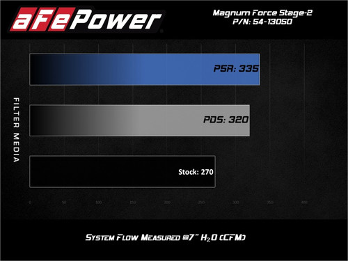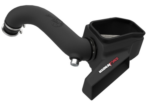 This 360-degree radial flow air filter features a 3.5" flange and our oil-free Pro DRY S media with three layers of synthetic media for maximum convenience. Its progressive layering provides great filtration efficiency and dust holding capacity, while not requiring the use of oils. This media is best suited for street use. Its inverted top makes for more filter surface area, resulting in longer service intervals. This system features a high quality, computer-designed, dyno-tuned intake tube to achieve maximum power gains while maintaining a perfect fit. Its XLPE material is heat soak resistant and extremely durable. It features an aFe Power design inspired by European vehicles. The included massive air filter is surrounded by an open-element XLPE (cross-linked polyethylene) polymer housing that minimizes warm engine air for maximum performance. Its open design allows for easy viewing of the air filter and delivers an aggressive Air Intake sound. It’s design incorporates the OEM air scoop to ensure that it gets the coldest air available. This is a direct fit intake system that utilizes factory mounting points and requires no cutting or modifications. All necessary clamps, couplings, and hardware are included. Its revolutionary design, featuring our unique filter-to-housing interface, uses half the number of parts of a traditional cold air intake system. Included billet aluminum fittings allows stock connections to transfer over seamlessly.