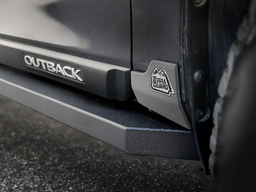 Introducing the Terra Guard Trail Step for your Subaru Outback: Your key to elevated adventures! Conquer any expedition with confidence using our large, high grip step pad for easy rooftop access. Durable steel construction ensures long-lasting strength, while the textured black powder-coated finish promises unmatched durability. Replacing factory cladding without drilling or cutting, our unique design utilizes original mounting points and allows for added ground clearance. Unlock the potential of your Outback and elevate your journeys with the Terra Guard Trail Step - where functionality meets style. Our high grip step provides a secure platform to gain access to roof top storage and gear. Replaces factory lower plastic cladding, utilizing original mounting points with no drilling or cutting required. Slotted drain holes in pinch seam rail allow for water drainage. All steel construction for long lasting strength and durability. Finished in a textured black powder coating not only ensures long-lasting durability but also adds a touch of rugged elegance to your vehicle's appearance.