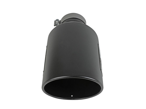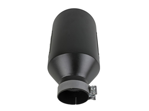 This direct-fit clamp-on tip is constructed from 304 stainless steel and features a black finish for corrosion resistance for long lasting good looks. Designed to fit 4" exhaust systems; 4" inlet x 8" outlet and 15" inch length. This tip features an aFe POWER logo for an aggressive, custom look. A high quality stainless steel clamp is used for a complete 360 degree sealing surface. This product does not require a CARB EO#.