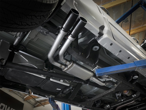 This Rebel Series exhaust is a dual, middle-side exit system for the 2009-2018 GM Silverado/Sierra 1500 Crew Cab/Long Bed and delivers +14 horsepower and +17 lbs. x ft. of torque as measured on our in-house dyno. 3" into dual 2-1/2" mandrel bent stainless steel tubing and high flow muffler offers maximum flow, increases horsepower and torque while producing a powerful sound. Finished with dual 3 ½" black, stainless steel tips exit in front of the rear passenger tire for a unique, aggressive look. Includes all necessary hardware and clamps for a hassle-free install.