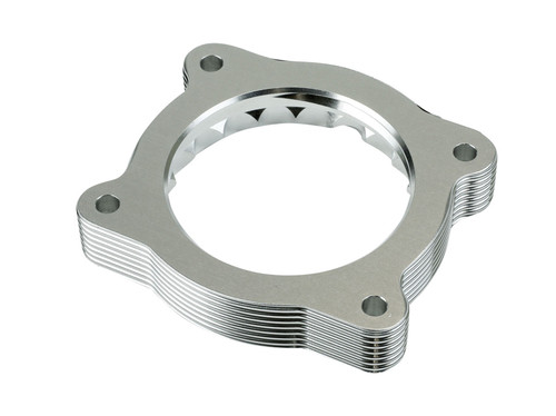 The serrated/helix design creates air turbulence in the intake manifold. This turbulence increases the air pressure in the combustion chamber, resulting in increased performance and improved throttle response. The serrated/helix combination design also reduces intake whistle that occurs with helix-only designs (US PAT 07055513). This Silver Bullet throttle body spacer is precision machined from 6061-T6 billet aluminum for lightweight, high strength, and perfect fit and finish. Its black anodized finish gives a stealthy look. Adding a Silver Bullet Throttle Body spacer lengthens the intake track which helps increase intake air speed, performance and improve throttle response. This Silver Bullet throttle body spacer uses all factory mounting locations, making for a hassle-free installation. A supplied gasket provides a perfect seal.