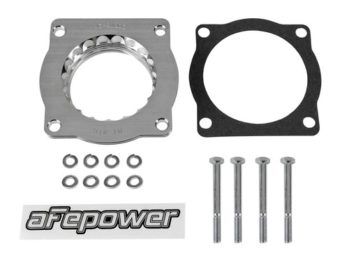 Silver Bullet throttle body spacers create turbulence in the air flow at the point just prior entry into the engine increasing horsepower, torque and improving throttle response and fuel efficiency. Silver Bullet throttle body spacers are constructed out of durable T-6061 billet aluminum and using a unique serrated/helix entry to create turbulence at the manifold while eliminating the annoying whistle found in other helix only throttle spacers.