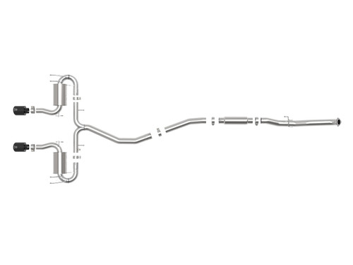 Performance Gains: This system produced gains of up to +6 HP and +5 lbs. x Ft. TQ., as measured on our in-house dyno.3" - 2-1/2" 304 Stainless Steel Construction: This cat-back exhaust system is constructed of 3" - 2-1/2" mandrel-bent, brushed finished 304 stainless steel tubing for maximum strength and durability.High-Flow 304 Stainless Steel Polished Mufflers: This system features high-flow 304 stainless steel polished mufflers, producing a smooth sound. The mufflers has a polished finish for ultimate corrosion resistance.Dual 4-1/2" Diameter Black Exhaust Tips: Finishing off this exhaust system are dual 4-1/2" diameter black 304 stainless steel clamp-on exhaust tips. The tips features a laser etched Takeda logo for a unique style.Installation: Utilizing a factory style flange and hangers this system is a direct bolt-on system, which requires no cutting or modifications for a hassle-free installation.Integrated Mitered Merge Collector: A mitered merge collector is used to decrease turbulence and increase exhaust velocity resulting in increased horsepower, torque and improved throttle response.Computer-Aided Design: Utilizing state-of-the-art computer-aided design technology, this exhaust system is designed for custom, high tolerance factory fitment.TIG-Welded: 100% TIG-Welded for race-proven strength and durability.Emissions Disclaimer: This product does not require a CARB EO#.aFe POWER exhaust systems are engineered and manufactured in our Corona, California facility.