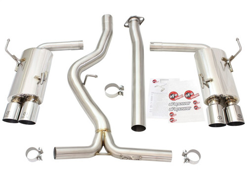 aFe is proud to introduce an all new Takeda dual cat-back exhaust system for the 2015-2020 Subaru WRX and WRX STI with the H4-2.0L/2.5L (t) engines. This performance cat-back exhaust system is constructed out of 3" into dual 2-1/4" mandrel-bent 304 stainless steel tubing and incorporates a mitered merge to evenly distribute exhaust gases resulting in added horsepower and torque. In testing, this system resulted in gains up to +14 horsepower and +22 lbs. x ft. of torque verified by our in house dyno. This cat-back exhaust utilizes dual high-flow 304 stainless steel mufflers to improve performance across the power band while maintaining an aggressive sound. To finish off the exhaust are quad, 304 stainless steel, high-luster, polished 3-1/2" diameter tips. The tips come with laser-etched Takeda logos for an aggressive style. This unit is 100% TIG-Welded by certified craftsmen for race proven strength and durability and is a direct bolt-on system that requires no modifications. All necessary hardware is included for a hassle-free installation.