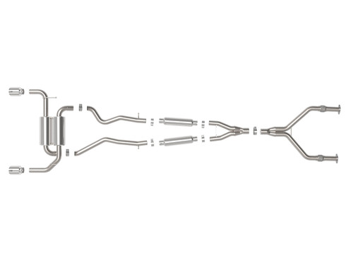 This cat-back exhaust system is constructed of 2-1/2 IN mandrel-bent 304 stainless steel tubing for maximum strength and durability. This system features high-flow 304 stainless steel polished mufflers, producing a aggressive sound. The mufflers has a polished finish for ultimate corrosion resistance. Finishing off this exhaust system are dual 4-1/2 IN diameter polished 304 stainless steel clamp-on exhaust tips. The tips features a laser etched Takeda logo for a unique style. This system produces an aggressive sound unleashing all available horsepower and torque. Utilizing a factory style flange and hangers this system is a direct bolt-on system, which requires no cutting or modifications for a hassle-free installation. State-of-the-art computer-aided design technology is utilized for precise vehicle fitment.