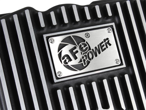 aFe POWER Pro Series deep transmission pan brings performance engineering to the protection of your trucks transmission. This transmission pan has additional capacity for 2 more quarts over stock at the factory line, a magnetic drain plug and a 1/8" NPT port for your temperature sensor. Built-in internal and external fins transfer heat from the fluid to the outside air for maximum cooling. This transmission pan is constructed out of durable die-cast A356 aluminum with reinforced ribs and a wrinkle black powder-coating for maximum strength and styling.