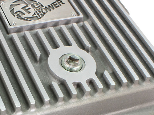 aFe POWER Street Series deep transmission pan brings performance engineering to the protection of your trucks transmission. This transmission pan has additional capacity for 2 more quarts over stock at the factory line, a magnetic drain plug and a 1/8" NPT port for your temperature sensor. Built-in internal and external fins transfer heat from the fluid to the outside air for maximum cooling. This transmission pan is constructed out of durable die-cast A356 aluminum with reinforced ribs and a wrinkle black powder-coating for maximum strength and styling.