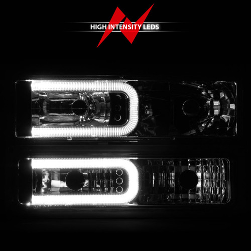 ANZO 88-98 Chevrolet C1500 Crystal Headlights w/Light Bar Chrome Housing w/ Signal Side Markers 8Pcs - 111529