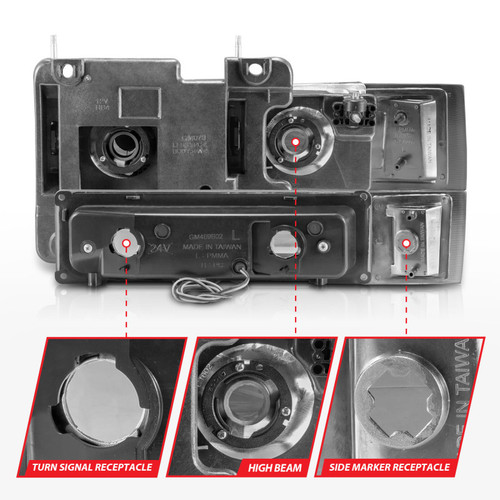 Crystal Headlight Set, Clear Lens, Black Housing, 2 pc., Not For Use w/Sealed Beam Headlights, . Guaranteed To Improve Your Vehicles Appearance. Rigorously Tested For Fit And Function. Simple Plug And Play. No Modifications Required. Easy Installation Using Common Hand Tools. Uses Stock Mounting Locations And Hardware. D.O.T. Compliant To S.A.E. Standards. Sold As A Pair.
