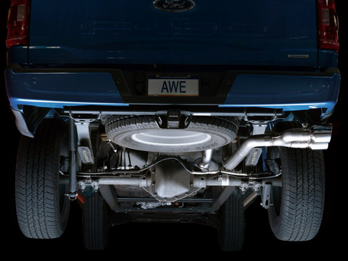 Featuring a non-resonated mid-pipe and AWE’s proprietary, patented drone-canceling solution, 180 Technology®, the 0FG Exhaust delivers a unique dose of refined aggression out of your F-150, without any drone at cruising speeds.The AWE 0FG Exhaust is a rugged 3” T304L stainless steel Cat Back configuration with a 100% straight-through design for optimal flow. Regardless of low or high gear, the 0FG Exhaust will be on the top of your playlist. The AWE Dual Single Side Exit 0FG Exhaust features two 4. slash-cut tips that reside behind the rear passenger-side fender. With adjustment at the tip outlet, drivers can adjust the angle of the tips to their liking (we like them parallel to the ground ourselves). These are available in your choice of Chrome Silver or Diamond Black, and come with the AWE stamp of approval. Each tip is individually adjustable, allowing bumper depth to be set according to your personal taste. The AWE 0FG Exhaust for the ‘21+ F-150 is applicable to 145.4 & 157.2 wheelbases (except Tremor & Powerboost). AWE's No CEL Guarantee, Perfect Fitment Guarantee, and Lifetime Warranty come standard.