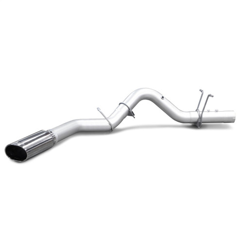 Stainless constant-diameter pipes and straight-thru muffler nearly doubles flow. Lower exhaust temps. Virtually no backpressure. Rich, throaty sound. Monster exhaust system flows better than stock and virtually eliminates backpressure. The streamlined intermediate pipe(s) and tailpipe are formed of stainless, heavy-wall tubing with constant-diameter bends to maximize flow and lower exhaust gas temps. Banks replaces the factorys restrictive muffler with a polished-stainless steel Monster muffler, featuring a straight-through flow-path with a Banks-designed expansion chamber which dissipates the annoying mid-range exhaust drone thats so prominent in competitors straight-through mufflers. The muffler utilizes spun ceramic, very-high-temperature packing, more than doubles the stock flow and delivers an authoritative - but never intrusive - exhaust sound. A stainless steel tailpipe tip in your choice of polished chrome-over stainless or high-temp black sports a rolled edge. And to help keep it looking good, theres a 1/2 in. air gap to keep heat from tarnishing the finish. An adjustable clamp lets you position it on the tailpipe just right.