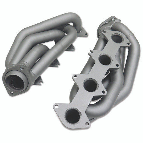 These BBK Performance shorty tuned Length exhaust Headers are designed and constructed as direct fit replacements for all 2005-10 Mustang GT applications. Each header is manufactured with 1-5/8 in. CNC mandrel bent tubing that offers unrestricted exhaust flow for increased horsepower and torque over factory OEM manifolds. BBK tuned Length headers offer improved scavenging waves for better combustion, which leads to improved performance and fuel economy over stock or equal Length headers. As with all BBK Performance exhaust headers they feature a 3/8 in. laser cut flange for additional strength and a guaranteed leak free fit. All headers are robotically and precision hand welded and then pressure tested to ensure years of reliability and performance in the real world. All BBK exhaust headers are available in a high temp titanium ceramic or polished silver ceramic coated finish and include new exhaust header gaskets, header bolts and hardware to complete the installation.