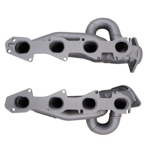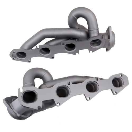 These BBK Performance shorty tuned Length exhaust Headers are designed and constructed as direct fit replacements for all 09-18 Dodge Ram truck 5.7L 1500 applications ONLY. Each header is manufactured with 1-3/4 in. CNC mandrel bent tubing that offers unrestricted exhaust flow for increased horsepower and torque over factory OEM manifolds. BBK tuned Length headers offer improved scavenging waves for better combustion, which leads to improved performance and fuel economy over stock or equal Length headers. As with all BBK Performance exhaust headers they feature a 3/8 in. laser cut flange for additional strength and a guaranteed leak free fit. All headers are robotically and precision hand welded and then pressure tested to ensure years of reliability and performance in the real world. All BBK exhaust headers are available in a Titanium Ceramic or polished silver ceramic coated finish and include new exhaust header gaskets, header bolts and hardware to complete the installation. Note: They DO NOT FIT 2500, 3500 or MEGA CABS