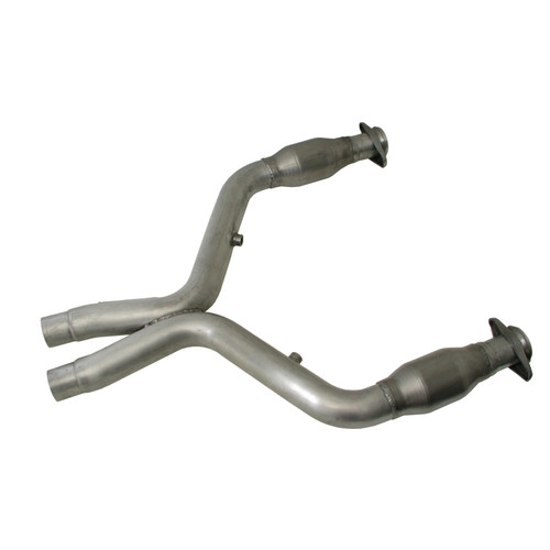 BBK Performance short mid X pipes with high flow catalytic converters are specifically designed to be used with BBK full Length exhaust headers to complete the exhaust installation to your cars cat back exhaust system. This BBK mid pipe is designed and built with 3.00" CNC mandrel bent stainless tubing for maximum exhaust flow and high flow catalytic converters. All BBK mid pipes feature ball and socket style connectors for simple installation and adjustment for good ground clearance. The BBK merged X center section crossover is designed to maximize the exhaust flow potential of your Mustangs high performance engine to get the maximum horsepower and torque available to the ground. Every BBK mid X pipe offers performance, quality and value that guarantees years of top performance for your Mustang.For Use With BBK Long Tubes 1633/0 1856/0 on 11-14 5.0 Applications