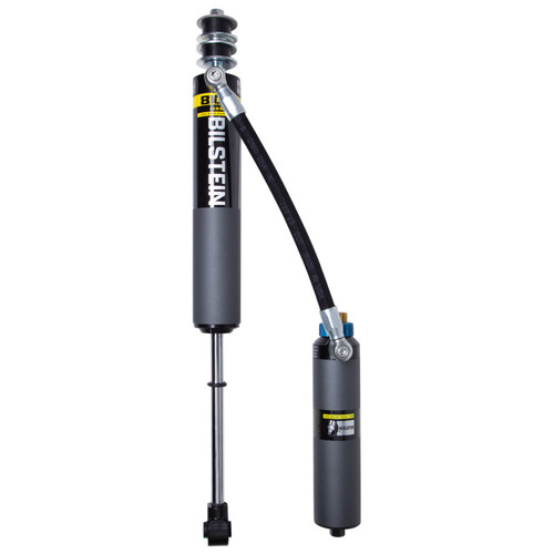The Bilstein B8 8100 (DSA) reservoir shock absorber is an adjustable large bore 60mm (2.65" OD) direct fit solution for lifted trucks and SUVs. Constructed from aerospace quality billet components, the large 60mm ID shock body offers a higher oil volume capacity to control heat while tackling rough road surfaces over long distances. Click adjuster knobs allow easy and precise Dual Speed Adjustment of both low and high speed compression to tailor your ride to any surface. Each B8 8100 (DSA) offers a unique remote or piggyback reservoir solution for an easy, hassle free installation. These shock absorbers feature a monotube design for consistent fade free performance and utilize velocity sensitive digressive valve settings which are tuned for each specific application. The large 60mm piston design offers more comfort and control in all driving conditions. The Bilstein B8 8100 (DSA) will allow you to tame the terrain in comfort.