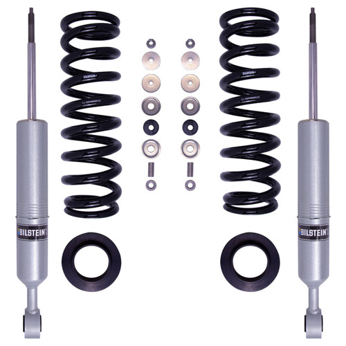 Bilstein B8 6112 leveling kits are designed to provide more ground clearance, allow for larger tires, and increase wheel travel. Multiple snap-ring grooves in the body allow for different spring seat positions, providing 0-2.75 inches of front lift (depending on application). These kits consist of (2) 60mm shock absorbers combined with (2) custom matched cold wound coil springs and (2) billet aluminum spring seats. The large 2.65-in OD body and 60mm digressive piston allows for increased damping control for optimal on-road and off-road capabilities. Experience the legendary Bilstein off-road experience with the best direct fit spring and shock kit for your light truck or SUV.