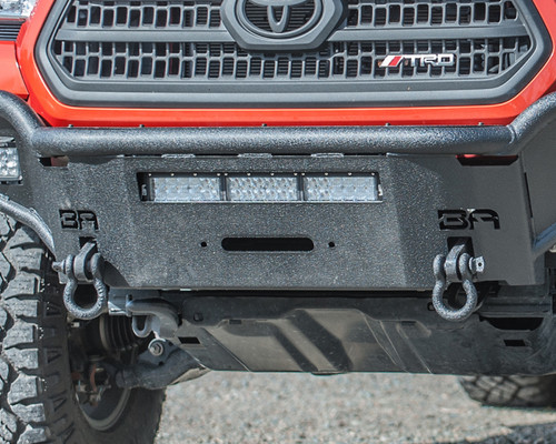 Upgrade your vehicle with our innovative front bumper, featuring a two-piece construction with a subframe winch mount for enhanced strength and durability. The tubular frame, supported by sheet metal, is designed to increase your vehicle's approach and departure angles, making it perfect for off-road adventures. With a 10,000 lb winch capacity, this bumper is ready for any recovery operation. The two-stage powder coat in a heavy texture black finish ensures long-lasting protection and a sleek appearance. Light fitment options include a front 20'' double row LED and 4 cube lights, providing excellent visibility in all conditions. Ideal for those seeking a combination of functionality and rugged design, this bumper is the ultimate upgrade for your vehicle.