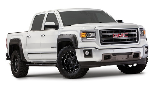 With their recessed stainless steel bolts and massive presence, Pocket Style Fender Flares are a Bushwacker original and an off-road icon. They give you the hard-core look of bolt-on flares, with no body-side sheet metal drilling required. Pocket Style Fender Flares are custom-designed for your vehicle to complement oversized tires and high-clearance lift kits. You can mount them right out of the box with their tough, OEM-style matte black finish they're UV protected so they won't chalk. You can also paint them to match or accent the body color for a factory-custom look. Pocket Style Fender Flares are made from our thick, warp-resistant Dura-Flex 2000 material and tailor-made for added durability and flexibility on the trail. When you need maximum tire coverage with minimum time and effort, it's in the pocket. Pocket Style Fender Flares from Bushwacker.
