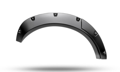 With their recessed stainless steel bolts and massive presence, Pocket Style Fender Flares are a Bushwacker original and an off-road icon. They give you the hard-core look of bolt-on flares, with no body-side sheet metal drilling required. Pocket Style Fender Flares are custom-designed for your vehicle to complement oversized tires and high-clearance lift kits. You can mount them right out of the box with their tough, OEM-style matte black finish they're UV protected so they won't chalk. You can also paint them to match or accent the body color for a factory-custom look. Pocket Style Fender Flares are made from our thick, warp-resistant Dura-Flex 2000 material and tailor-made for added durability and flexibility on the trail. When you need maximum tire coverage with minimum time and effort, it's in the pocket. Pocket Style Fender Flares from Bushwacker.
