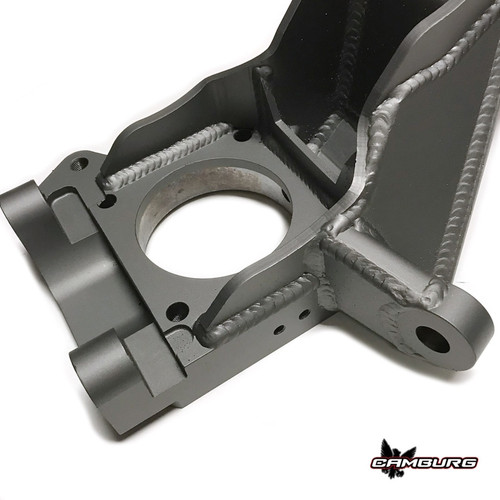 With our stock length replacement lower arms available, it was time to release our fully fabricated spindles for the customers wanting the ultimate combination of parts. These are the strongest stock replacement spindles out there on the market. These work with our long-travel kits, our stock length lower arms and even the stock lower arms. We designed these around the factory OEM spindle geometry and took them to the next level in strength and craftsmanship. With over 15+ years of running history of the stock design and us building custom versions for the military, we took what we’ve learned and know and applied them to our new Camburg performance spindles. We improved upon the design Toyota started with a much stronger detailed version. We relocate the ABS speed sensor that is prone to being damaged off-road internally. These work on 4wd and 2wd models with no modifications regardless if you’re running stock lower arms or a long travel kit. These do not lift the truck or widen it since it’s built around the factory specs. We do remove the provision for the front sway-bar so it will need to be removed (non-KDSS models). Strength, performance and articulation is our main focus on a product like this while having 2.5 coilovers that have added low speed compression to control body roll. We weren’t willing to compromise the integrity of the spindle for the serious off-roaders. If you have FOX 2.5 DSC coilovers you can adjust the low speed compression to control body roll during cornering. Using the latest Faro scanning technology and SolidWorks CAD/CAM modeling, we build these in house for the utmost control. We start with steel billets that get heavily CNC machined for weight reduction and precision, MIG weld the laser cut plates, then have them sand blasted and powder coated textured black. Once in your hands they are ready to be installed and we include stronger stainless braided Kevlar reinforced front brake lines.