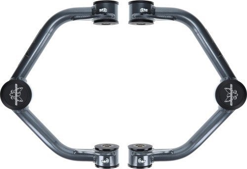 For 4th generation DS model trucks '09-18 and '19-21"Classic"When lifting your truck, the stock upper arms become the limiting factor and hold back your suspensions performance. Our Camburg upper arms address these issues and more. Replacing the stock ball-joint with a larger 1.25 uni-ball bearing we’re able to gain wheel travel with a part that is considerably stronger and will last longer under extreme conditions. We build more caster and change the camber curve to correct geometry so the vehicle aligns correctly and improves driving characteristics and handling. Using the latest CAD/CAM engineering software we design these arms to the strictest standards using our FARO laser scan arm to model the OEM parts and frames. Manufactured in-house, we have the tubes CNC laser cut and bent, then are MIG welded in precision fixtures before sending out to be sandblasted and powder-coated. Our in-house CNC machine shop makes all the machined parts including the uniball mis-alignment spacers from heat-treated stainless steel. We pride ourselves in producing the best parts available under our own roof and control. Increases usable wheel travel Corrects camber and caster Eliminates weak factory ball-joints 4130 chromoly construction Laser cut and CNC bent tubes MIG welded CAD/CAM engineered Polyurethane frame pivot bushings with grease-able zerk fittings FK 1.25" PTFE-lined uniballs pre-installed Steel gray powder-coating All necessary hardware included and ready to install Made in the USA Designed for 1-3" of lift For models without air ride suspension For models without air ride suspension For 4th generation DS model trucks '09-18 and '19-21"Classic".
