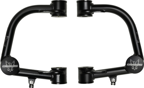 Introducing the Camburg X-Joint, a high-performance ball-joint designed for extreme conditions. Made with heat-treated materials and an improved boot design, it offers increased strength, better greasing, and extended longevity. The fully sealed dual lip seal design prevents contamination from dirt, sand, rain, mud, and snow. With a grease zerk fitting, you can easily grease the joint without removing the boot. Specifically designed for our ball-joint upper arms, the X-Joint provides optimum fit and maximum wheel travel. It corrects suspension geometry, improves handling, and allows for a wider range of alignment adjustment. The tubular construction offers more tire and shock clearance compared to stock arms. CNC bent tubes, MIG welded, and featuring thicker .156" wall round tubing, these arms are built to last. Polyurethane frame pivot bushings with grease-able zerk fittings ensure smooth operation. The Camburg X-Joint comes pre-installed with billet aluminum covers and a matte black powder-coating. All necessary hardware is included for easy installation. Designed for 1-3" of lift, it increases usable wheel travel and corrects camber and caster. Made in the USA in-house, the Camburg X-Joint is the perfect upgrade for 6 lug model trucks.