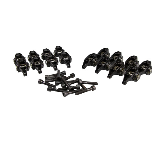 Stock LS Rocker arms can experience cageless needle bearing failure when loads are increased. COMP Cams engineers have solved this problem with upgraded Rockers featuring a stronger and more durable trunnion and captured bearing design. These upgraded Rockers increase lift capacity and utilize caged precision Roller bearings to improve valve train durability. The trunnions are secured by snap rings. The Rockers feature a black-oxide finish and are available for LS1, LS3 and LS7 valve train geometries. A DIY upgrade kit is also available for users with stock Rockers. It features a magnetic Installation tool, and its cylindrical construction is perfect for use in an arbor press, bench vise or c-clamp.