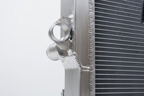 The 2-Row 42mm aluminum core not only increases the fluid capacity of the radiator, but also improves the cores ability to dissipate heat. CSF's Exclusive B-Tube Technology increases the heat transfer by approximately 15% over regular oval welded tubes. In addition, the super-efficient multi-louvered fins maximize airflow through the core for the best possible performance. End tanks are made from high grade aluminum and TIG welded to the core for extra strength. In contrast, the OEM crimped onto plastic end tank design is much weaker and creates a weak point where failure is more likely. Because the CSF radiator is designed as a true plug-and-play drop-in fit application, installation requires absolutely no modifications, trimming, or cutting. CSF even includes pre-cut double sided adhesive foam strips to help seal the fan shroud against the radiator. This improves airflow efficiency off the fan. Additionally, the radiator features a built-in transmission oil cooler. The transmission cooler is a heavy-duty high-performance 5 plate design that connects to the OEM hoses. The upgraded built in cooler is great dealing with the added heat and stress from towing, low gear crawling, and vehicles equipped with oversized tires. While many understand the impacts of oversized tires, it is always good to provide extra incite. By increasing the diameter of your tires, you are reducing the effective gear ratio. This means the engine and transmission have to work harder to move the tires. Obviously this will end up generating excess heat, but the CSF radiator is designed to handle it.
