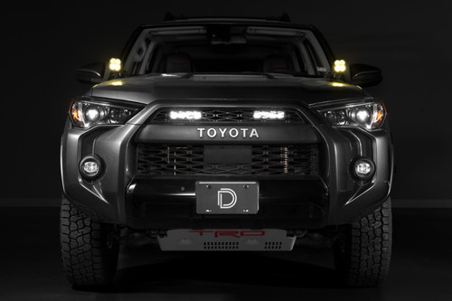 Features Patented TIR Optics for maximum efficiency and output. True amber backlight provides unique accent lighting. Available in Sport, Pro, and Max power levels. Utilizes existing mounting points for simple installation. Overview Perfect Fitment. The SAE/DOT LED Lightbar Kit compatible with the Toyota 4Runner 2014-2024 from Diode Dynamics allows you to mount a pair of SS6 Stage Series 6in Light Bars in the upper grille opening. These application-specific brackets were CAD-designed to install using factory mounting points. No cutting or drilling required! Designed For Performance. Using optical simulation modeling, Diode Dynamics Stage Series light bars have been designed for maximum functionality, with compact size, custom-engineered TIR optics, and a useful beam pattern, all in a highly durable package. Our light bars shine light in a highly functional and useful beam pattern, much more focused than older LEDs on the market. NOTE: Compatible with all Toyota 4Runner 2014-2019 trims, but only compatible with 2020-2024 TRD Pro trim package.