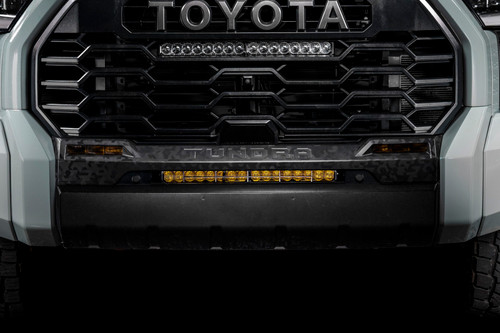Features Patented TIR Optics for maximum efficiency and output. Upgraded beam patterns engineered for real-world performance. True amber backlight provides unique accent lighting. Durable aluminum housing with ASTM-standard powdercoat finish. Built for the extreme with IP69K waterproof rating. Overview The Stealth Bumper LED Lightbar Kit compatible with Toyota Tundra 2022+ adds powerful auxiliary lighting with a clean, OEM-style appearance. These application-specific brackets have been CAD-designed to mount a 20-inch LED Light Bar behind the grille using factory mounting points. No cutting or drilling required! No drilling required! The new Stage Series Lightbars are the most capable lightbars available today! Designed for Performance. Each Stage Series Light Bar has been engineered from the ground to provide more output than any other light bar on the market. Unlike reflectors, TIR optics capture and focus nearly all of the light output, shining it only where you need it, without glare or wasted light. Functional Beam Patterns. Each beam pattern has been fine-tuned for real-world conditions to perform even better than before. Amber Backlight. All Stage Series LED Light Bars include an integrated amber backlight that fully illuminates the TIR optic, providing distinctive accent lighting and enhanced visibility when parked or stopped on the trail. Choose Your Power Level. The Sport model delivers impressive performance and value, while the Pro model provides a noticeable increase in total output and intensity for those who demand the highest level of performance.