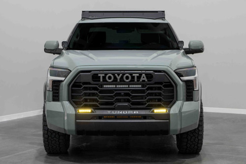 Features Direct fitment compatible with Toyota Tundra 2022+. Replaces the factory fog lights with two 6-inch light bars. Road legal output as fog lights. CAD-designed for perfect fitment and OEM-like appearance. Utilizes existing mounting points for simple installation - no cutting or drilling required. Overview Perfect Fitment. The SAE LED Fog Light Kit compatible with Toyota Tundra 2022+ from Diode Dynamics allows you to mount a pair of SS6 Stage Series 6" Light Bars in place of the factory fog light housings. These application-specific brackets were CAD-designed to install using factory mounting points. No cutting or drilling required! Choose Your Look. This kit allows you to mount a pair of SS6 Stage Series 6 inch Light Bars in the bumper openings. Street Legal Output. This kit isn't just for off road! It is legal for on-road use as fog lights (Please check your local laws and regulations for aiming, installation, and applicability). Wire adapters are included to connect the lights to your factory fog light connectors - no additional wiring needed! The SAE Fog/Wide pattern pattern provides an extremely wide field of view, without wasting any light in the sky above and provides a 100Wx8H degree spread of light. It was designed to supplement your fog lights and is perfect for driving in inclement weather. Designed For Performance. Using optical simulation modeling, Diode Dynamics Stage Series light bars have been designed for maximum functionality, with compact size, custom-engineered TIR optics, and a useful beam pattern, all in a highly durable package. Our light bars shine light in a highly-functional and useful beam pattern, much more focused than older LEDs on the market.