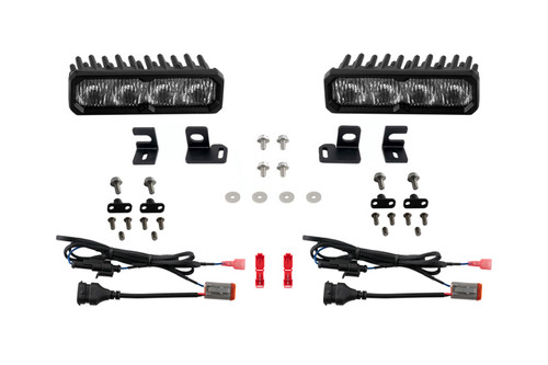 Features Patented TIR Optics for maximum efficiency and output. True amber backlight provides unique accent lighting. Available in Sport, Pro, and Max power levels. Utilizes existing mounting points for simple installation. Overview Perfect Fitment. The SAE LED Fog Light Kit compatible with Toyota Tacoma 2024+ from Diode Dynamics allows you to mount a pair of SS6 Stage Series 6" Light Bars in place of the factory fog light housings. These application-specific brackets were CAD-designed to install using factory mounting points. No cutting or drilling required! SAE Fog uses our distinctive FineLine optic, which provides an exceptionally wide pattern. The SAE Fog optic shines with a 90x10 degree pattern to fully illuminate the area directly in front of your vehicle. They are legal for on-road use as fog lights (Please check your local laws and regulations for aiming, installation, and applicability). Designed For Performance. Using optical simulation modeling, Diode Dynamics Stage Series light bars have been designed for maximum functionality, with compact size, custom-engineered TIR optics, and a useful beam pattern, all in a highly durable package. Our light bars shine light in a highly-functional and useful beam pattern, much more focused than older LEDs on the market.