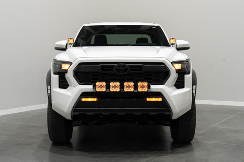 Features Bolt-on fitment compatible with Toyota Tacoma 2024+. Allows you to mount a four-pod CrossLink lightbar across the grille. Ultra-high intensity, with custom-engineered TIR optics. Selectable backlight color, with eight color options. Torture-tested, heavy-duty construction. Utilizes existing mounting points for easy installation. Assembled in USA Overview Perfect Fitment. The Grille CrossLink Lightbar Kit compatible with Toyota Tacoma 2024+ from Diode Dynamics allows you to mount four linked SS5 LED pods on the factory grille. These application-specific brackets were CAD-designed to bolt into place using factory mounting points on the bumper. No cutting or drilling required! Designed for Performance. Featuring the highest output intensity of any 5-inch LED pod on the market, these lamps have been designed for maximum functionality, with patented technology and custom-engineered TIR optics, all in a durable package. Selectable Backlight. The Stage Series 5inch LED Pods included in the White kit feature a selectable backlight with eight different color options, perfect for an extra styling accent that you won't find on other LED pods. Selecting your backlight color is easy - simply alternate the power on and off. There's no complicated programming with a controller! The SS5's backlight fully illuminates the TIR optic. NOTE: The Yellow kit is only available with an Amber backlight color. CrossLink. Our patent-pending CrossLink technology allows you to link up to eight SS5 pods together to create your own lightbar. The single-piece CNC aluminum link provides extreme rigidity, but is fully adjustable, for both straight and curved configurations.
